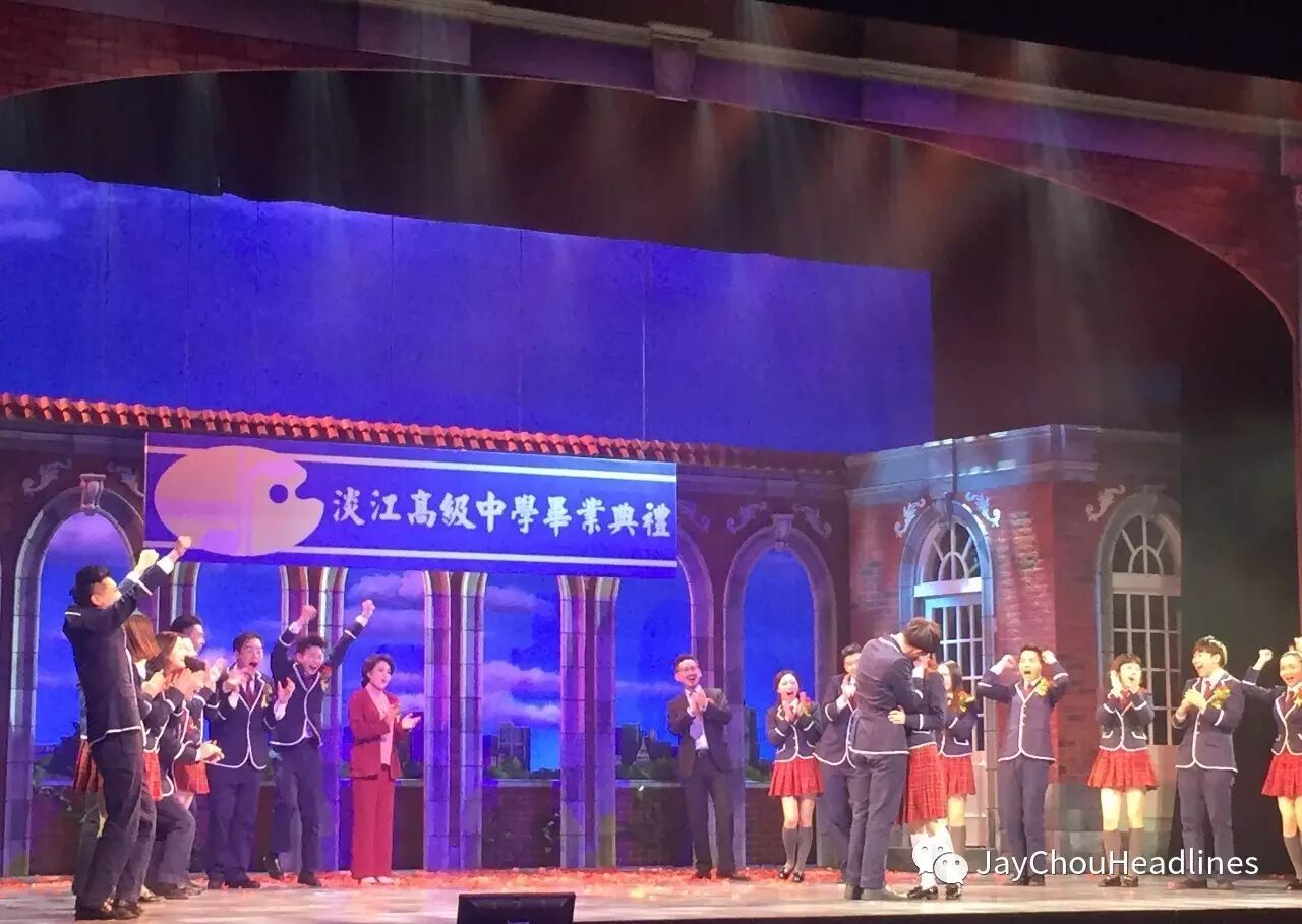 回头望去那些80后、90后观众,多数都沉浸在伤感、欢欣、激越的情绪转变中。校园里的学生装,台湾地区的服装对于内地观众更有陌生感,虽然也有师长们对于裙子长短的非议,对于内地爱美而不得的学生党来说,已然是相当美好的青春带入了。水手、酒吧、琴房相遇、斗琴、橄榄球大战、迎新、毕业、送别、重生,音乐剧诸多桥段,作为典型的点唱机音乐剧,《水手怕水》《晴天》《夜曲》《我要夏天》《双节棍》《稻香》《爷爷泡的茶》《屋顶》《牛仔很忙》等等有序放进,这些歌都能和男女主角的故事发生有效发掘,对于中外主创来说,也非易事,众所周知方文山的歌词意象翻飞、词意勾连而旁逸斜出,周董含混的唱法实则混元一体,演员们现场表演情绪饱满,而不只是带有社会熟知的学生腔调,对唱、合唱与独唱、不断移动的舞台尤其是细部挂饰的变化,灯光变幻的心境外化,令观众接受到清楚唱词的妙处。