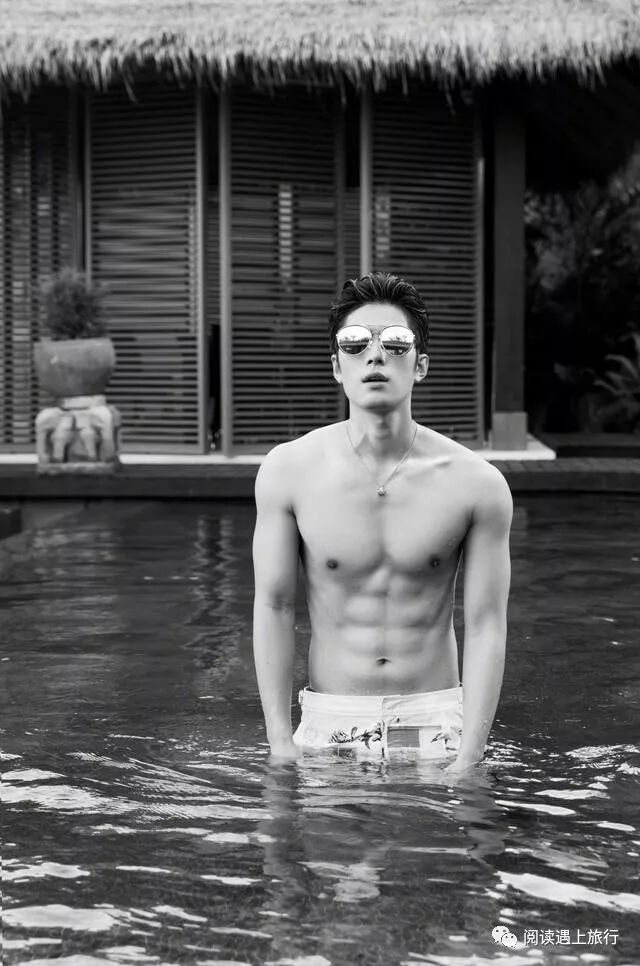 八块腹肌清晰可见,一幅墨镜相当的霸气。