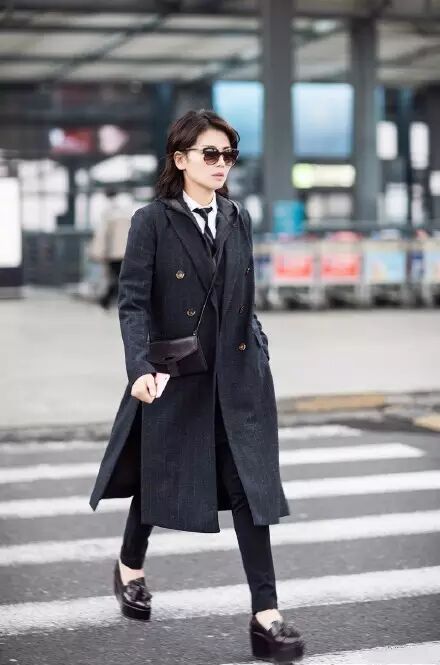 近日,刘涛曝光一组街拍美图,中长lob发型,内搭连帽衣和小领带、外穿双排扣毛呢大衣和修身裤、信封包和厚底流苏鞋,柔软包裹的羊绒服饰中点缀着矿盐色金属,精明干练,攻气十足。