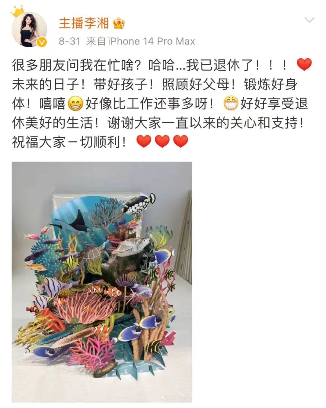 八月的最后一天,“李湘退休”忽然冲上热搜。