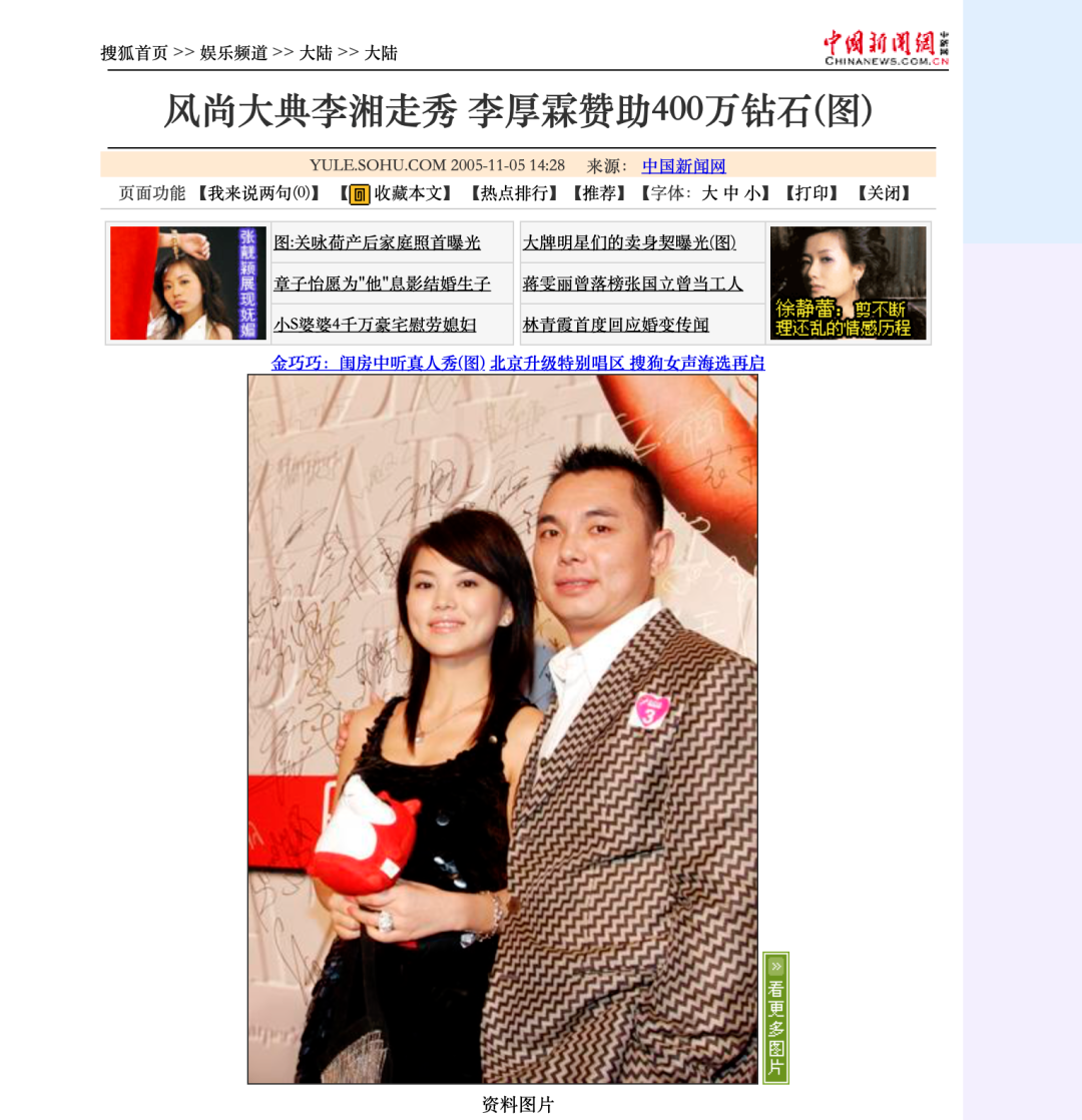 之后,李厚霖又被传出追求内地歌坛歌手孙悦,再后来,就是2004年,李厚霖与李湘,高调宣布婚讯。