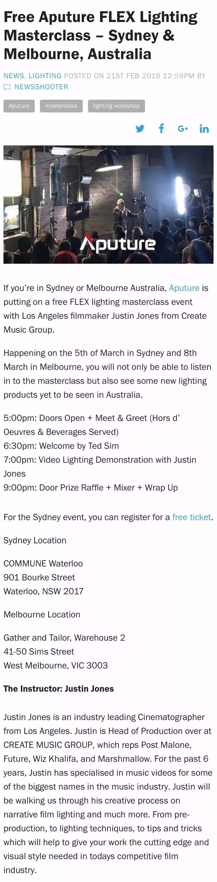 如果你居住在悉尼或墨尔本,爱图仕即将在这两个城市举行免费的FLEX灯光大师班培训活动,讲师是来自洛杉矶Create Music Group的贾斯汀.琼斯(Justin Jones)。