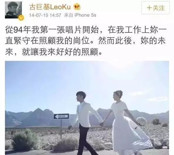 好在,古巨基并没有辜负一个女子多年的等待。