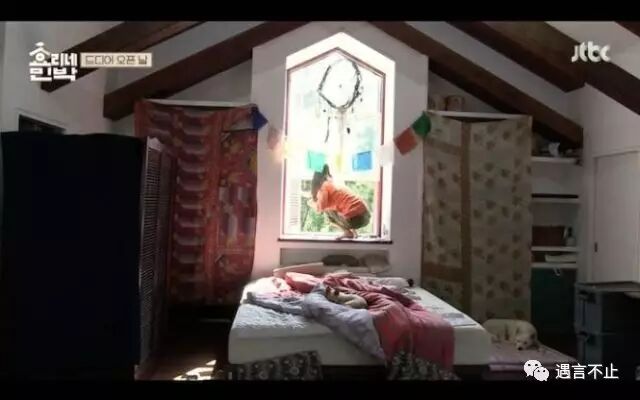 更有趣的是李孝利的家中全部空间都是开放式的,一扇门都没有,上到二楼直接是卧室,浴缸杵在窗口。她说:“反正就两个人住,要门干什么?”客人刚来住宿时很尴尬,妹子们要轮流去厕所,另外的人在“门口”帮忙遮挡。后来李孝利加支了一面屏风。