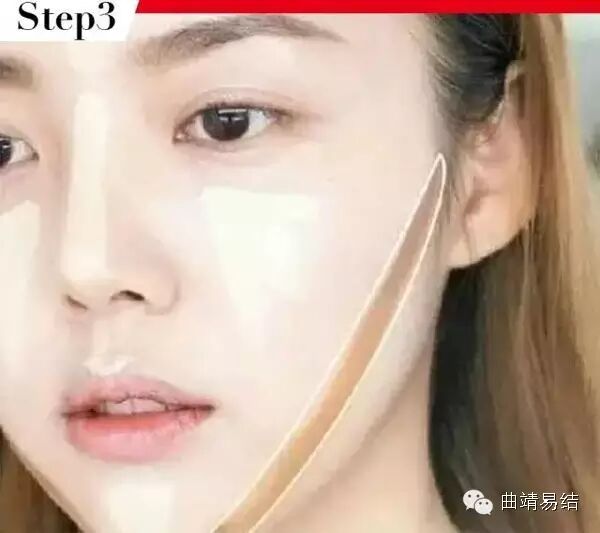然后用暗色修容如图打阴影,斜度越高越能呈现消瘦感哦!