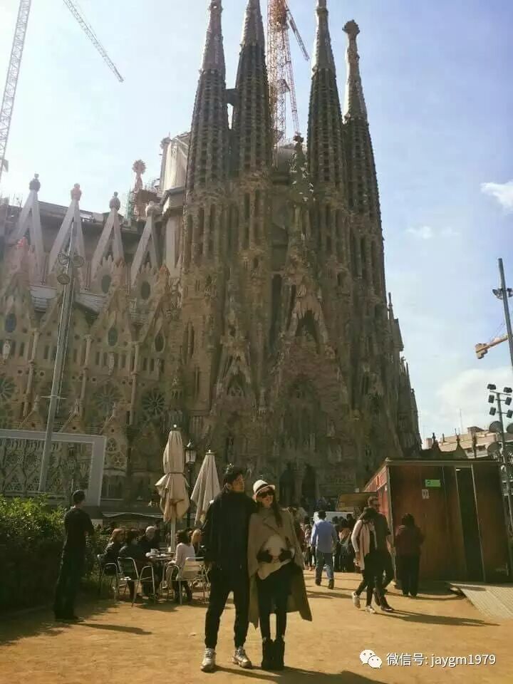 周杰伦与老婆昆凌游巴塞罗那圣家大教堂的照片