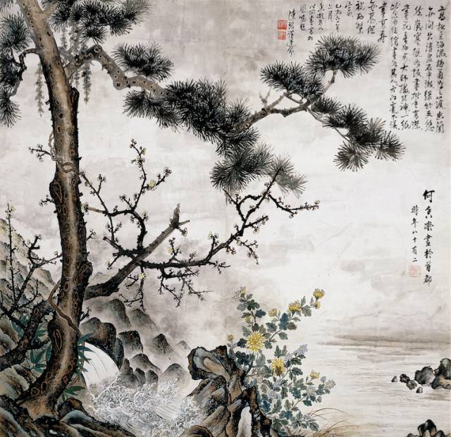 何香凝《松·菊》,设色纸本,173×273cm,1931年
