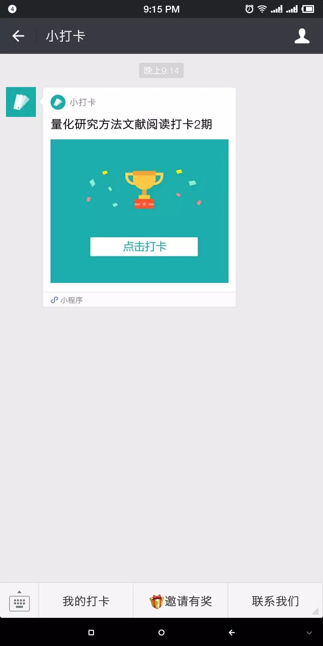 为此石头举办了第一期打卡活动。自从办了第一期文献阅读打卡活动,石头哥这个小心脏实在是受不了。虽然人不多,只有20多人,但大家的热情实在是夏天里的一把火啊。一开始,石头哥没有晚于12点睡觉的,生怕哪个宝宝错过了打卡,扒着手指头数,哪个谁,马上都12点了,怎么还没打卡呢?我是催呢,还是催呢,还是催呢?最后还是忍不住,悄悄发个微信:干嘛呢?起来打卡啦!