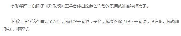而对于冷落王子文,蒋欣下来还耿直的问她了,真的是没有心机的娘娘啊。