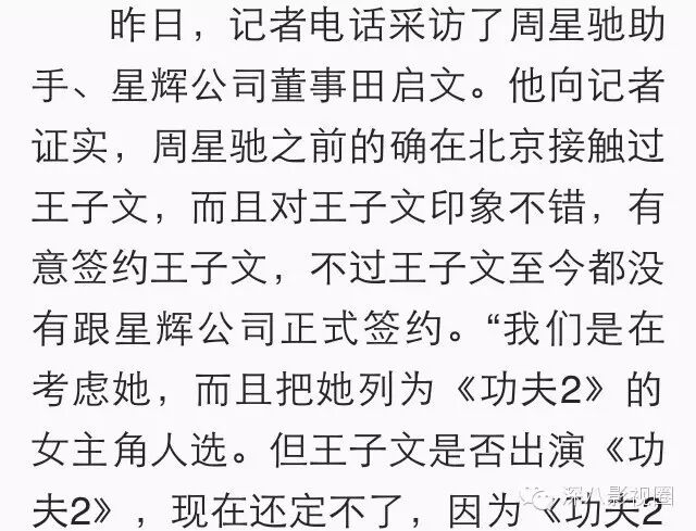 同一年,周星驰为功夫2选角,王子文差点入选。