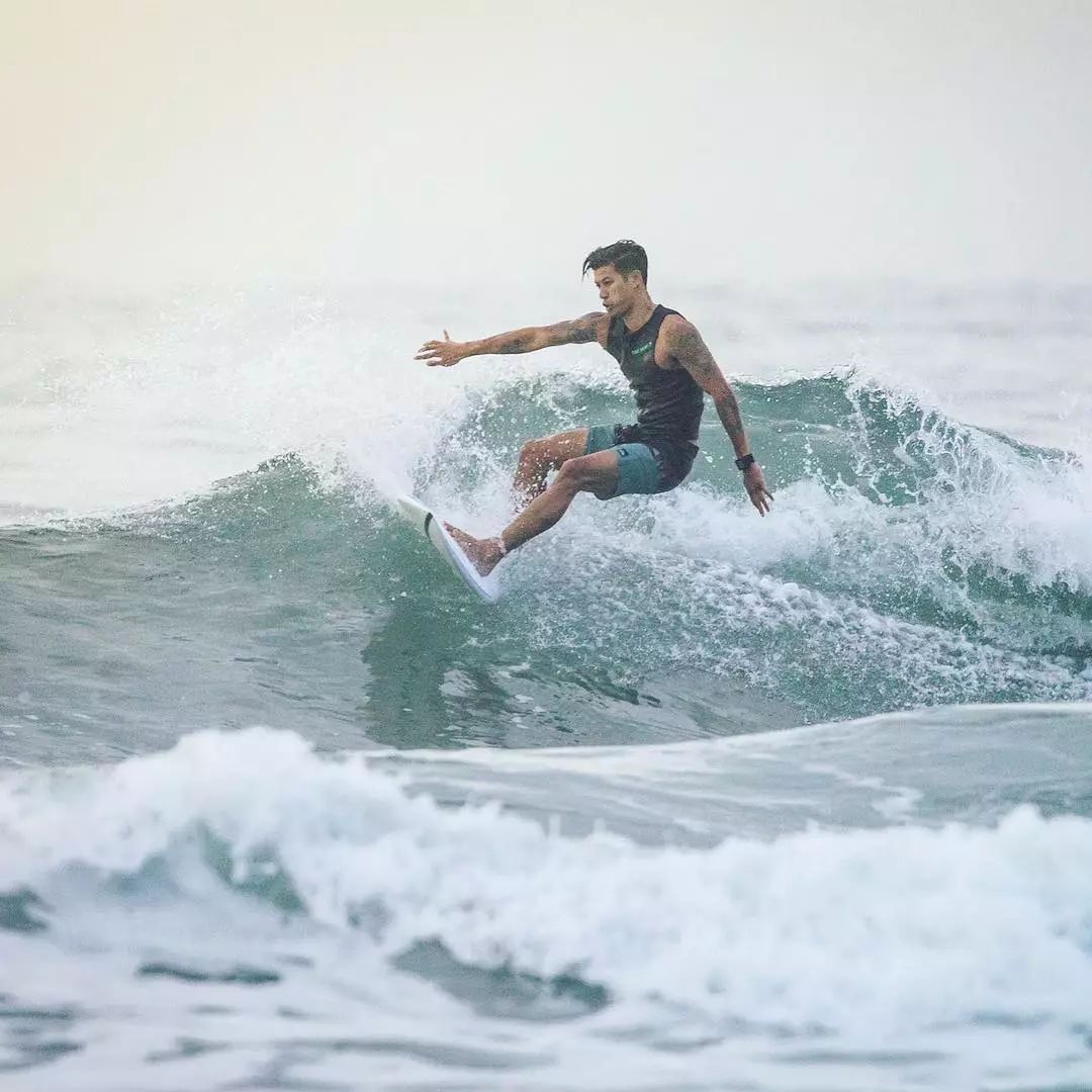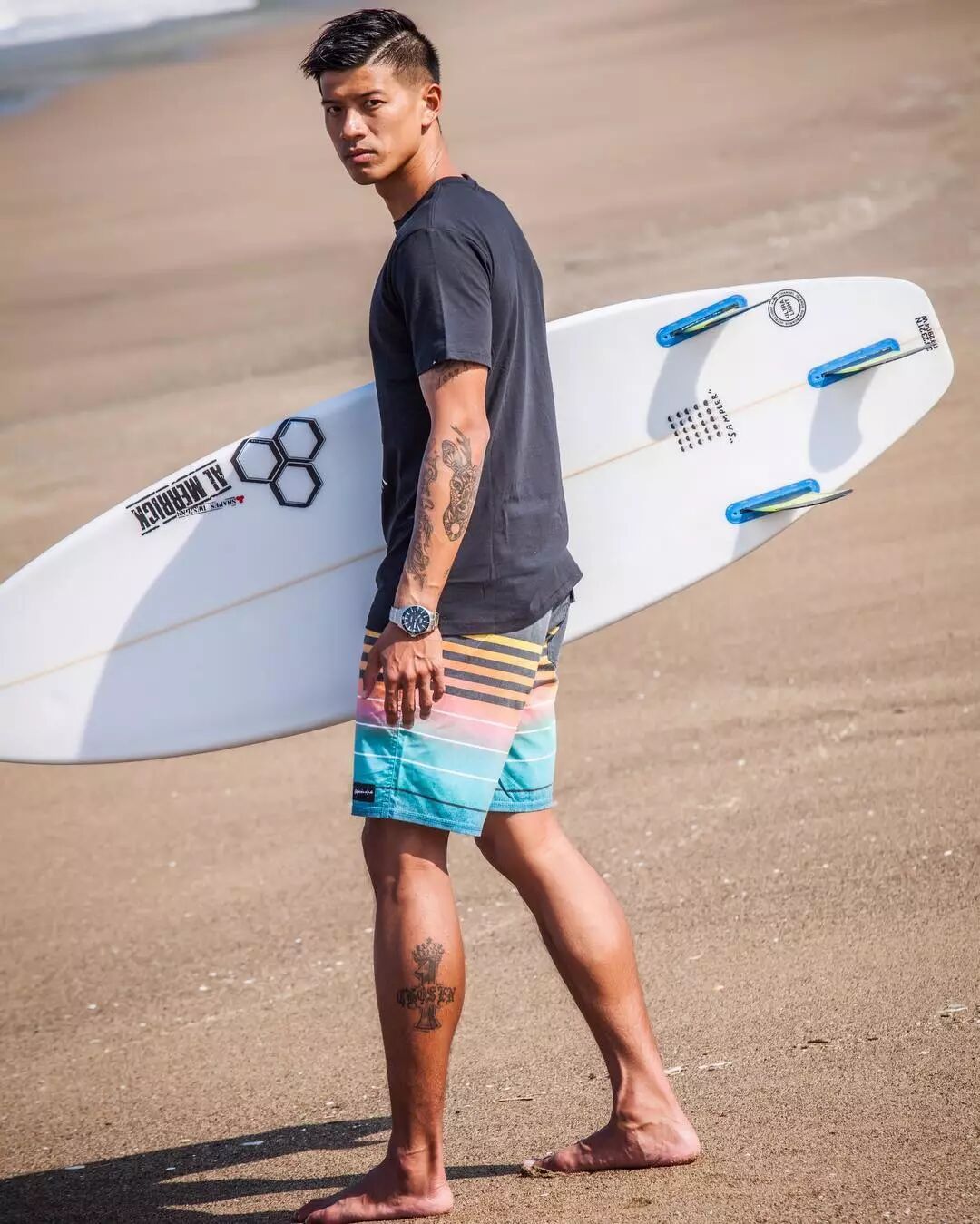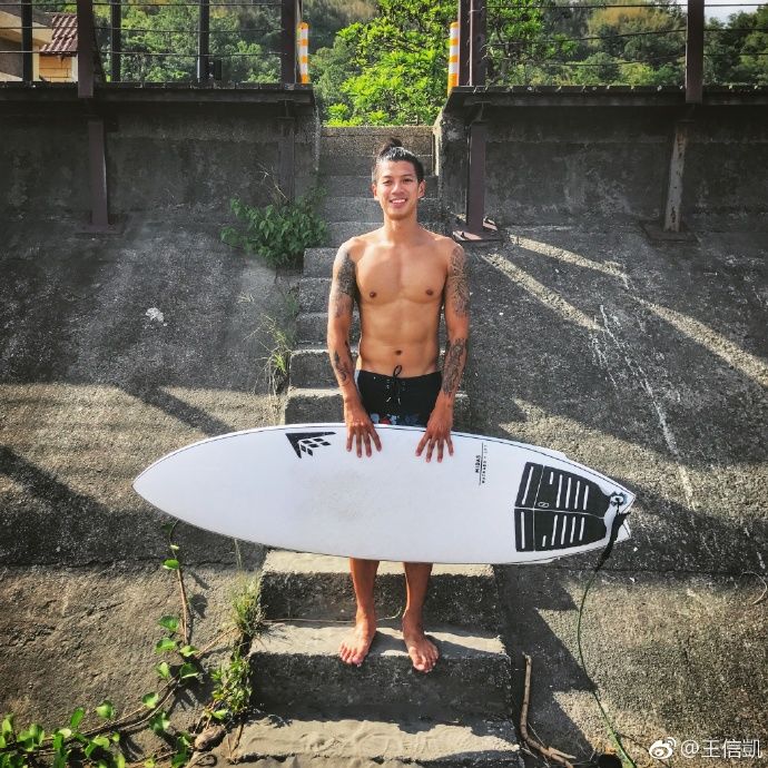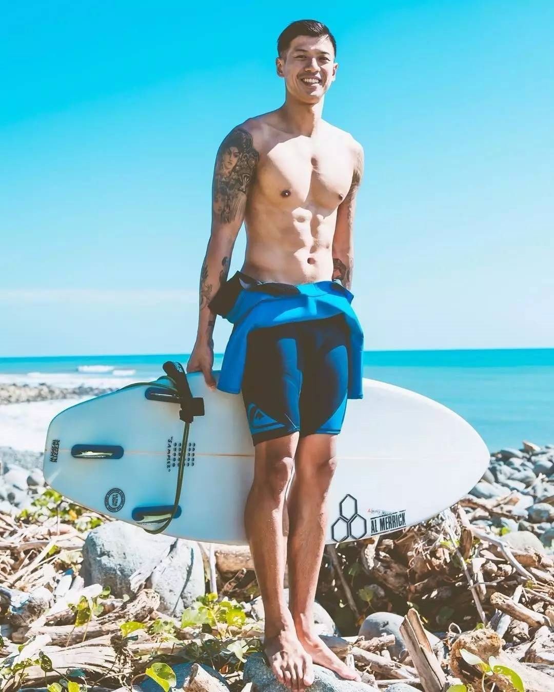 现在他已经是一名专业的冲浪者,“台湾第一帅”王阳明就是他的浪友之一。