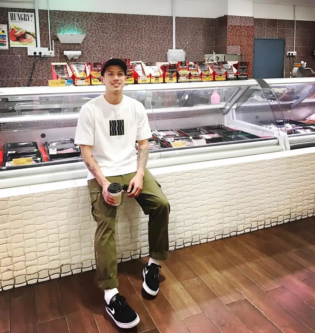 白T、球鞋、搭配工装裤就是他最爱的标配。