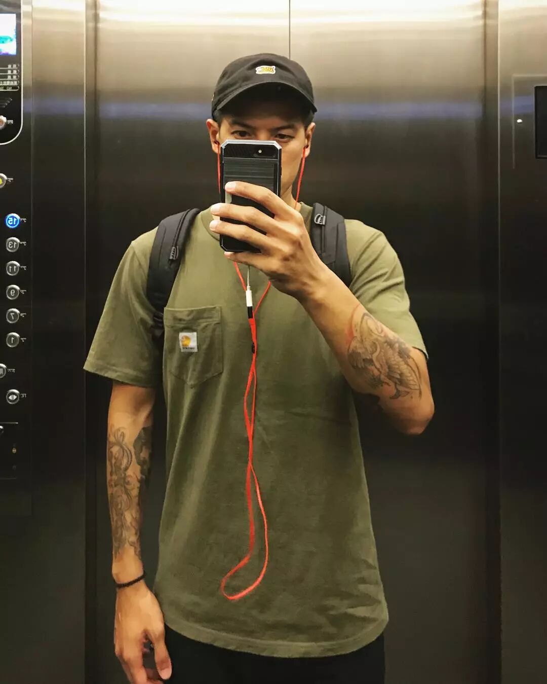 不知道是不是受余文乐传染,王信凯的手臂、背部和小腿也都布满了纹身。