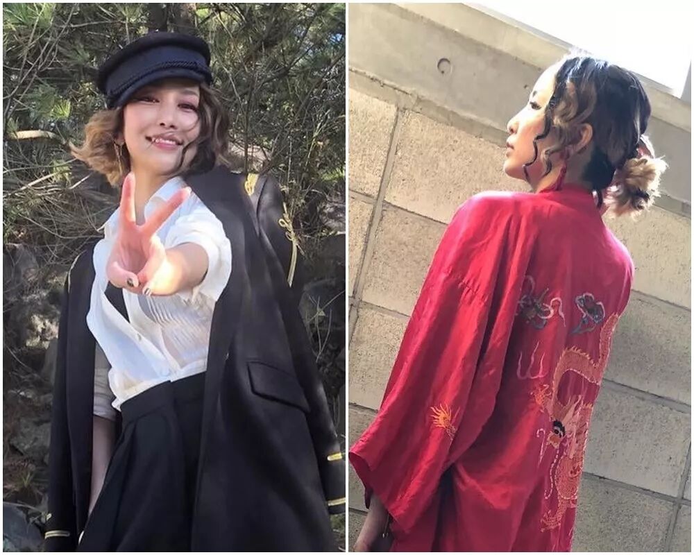 她最近染回黑发,多了种神秘感,上杂志拍大片更有高冷东方范儿。
