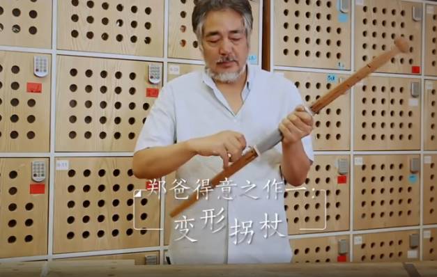 走路累了,随时可以打开变成板凳,坐下休息。这个拐杖是为了重阳节制作的。