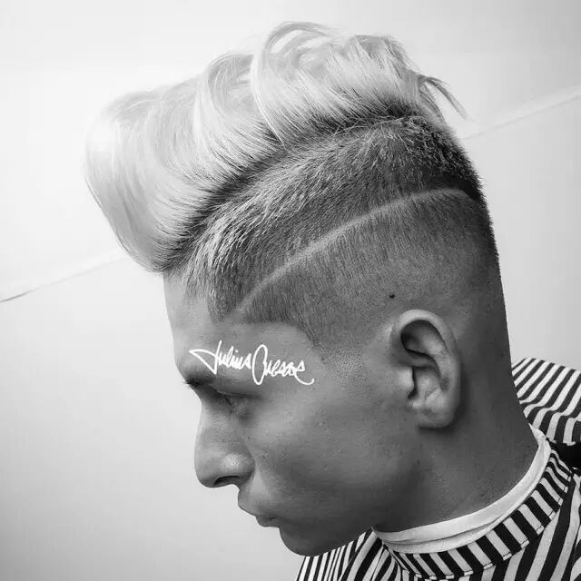 考虑到大家的实际情况,我们的身边恐怕很少存在手艺如此高超的理发师或造型师,太复杂的图案太难得到。想了一下,有一种简单的两条杠式的Hair Tattoo,会更容易打造,也更容易被接受。