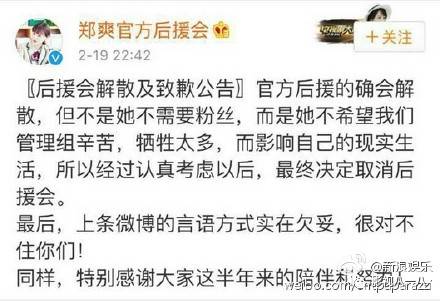 昨晚郑爽官方后援会突然发微博宣布解散,