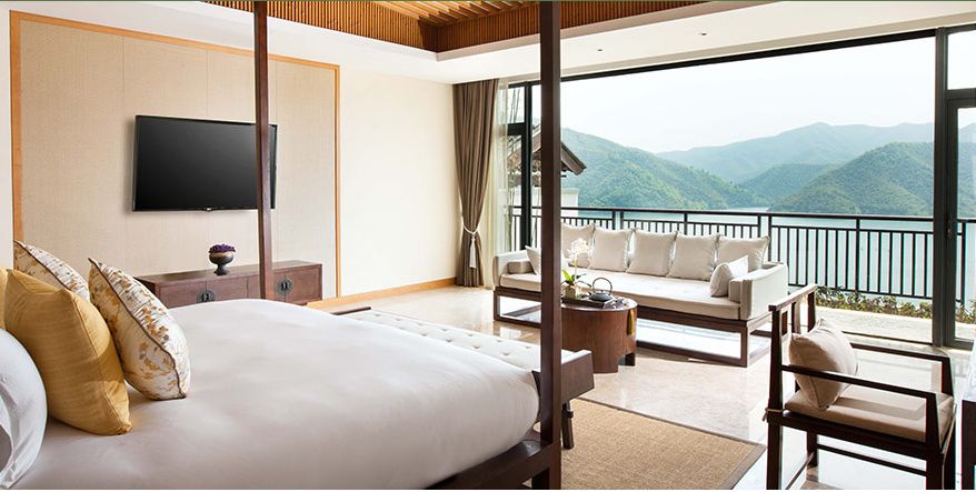 6万公顷的竹林环抱,74栋新派中式别墅,是阿丽拉少有的寄情山水之作。寻找生活中的一些仪式感,将酒店融于自然是安吉阿丽拉的理念。入住其中,并不会觉得自己打扰了这片山水,所以你可以怡然自得的卧于酒店的沙发或躺椅,感受这里独一无二的度假氛围。