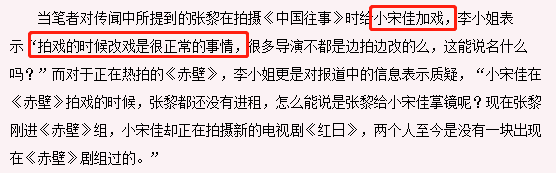 对于张黎导演给小宋佳加戏,她们也回应说,这是很正常的事情,没什么特殊。