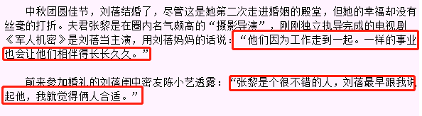 除了刘蓓有十年婚史外,外界爆料张黎离过五次婚,很多人都不太看好这段婚姻。