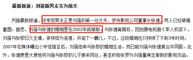 但当时张健和刘蓓的婚姻,维持了不到10年,2002年底两人就离婚了。