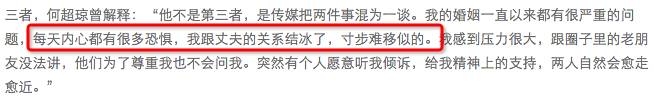 当时坊间都说杨其龙是许何婚姻的第三者,何超琼曾亲自出来解释,说她的婚姻一直有很严重的问题,跟许晋亨的关系早就结冰了,寸步难移似的。