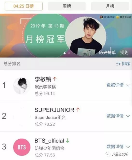 还拿下了韩流势力日榜第一,而且四项全第一。