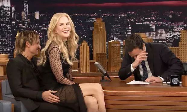 录制真人秀节目,妮可直接坐在老公大腿上,连主持人都笑趴、没想到自己的女神是如此可爱的女人。