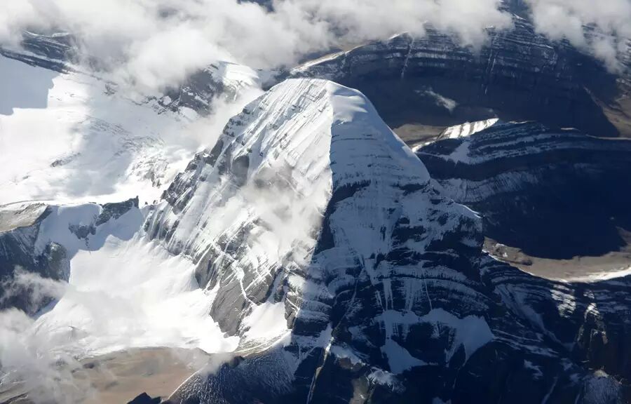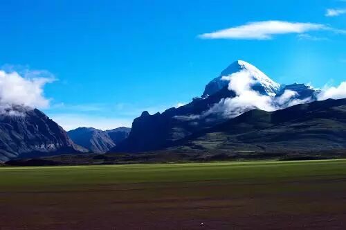 冈仁波齐峰经常是白云缭绕,当地人认为如果能看到峰顶是件很有福气的事情。
