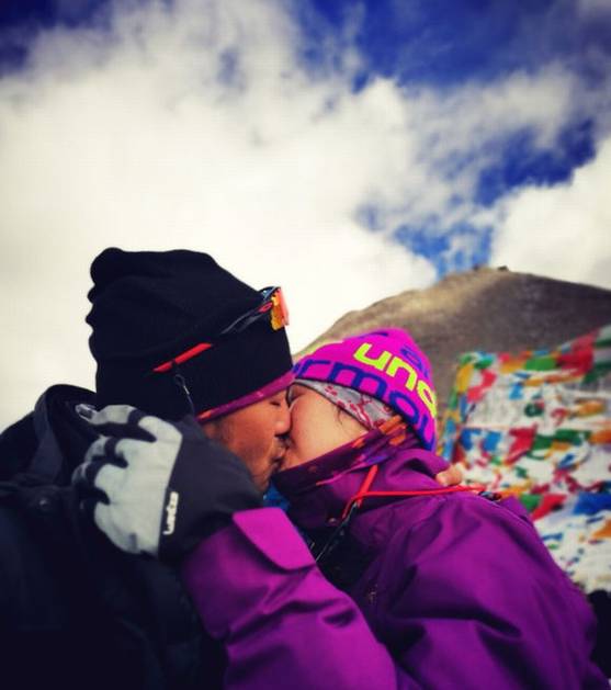 台湾男星陈亦飞去年10月认恋大陆女歌手谭维维,1日晚间传出小两口在西藏的冈仁波齐峰求婚成功,照片曝光可见谭维维被男友的惊喜感动落泪,相当幸福。