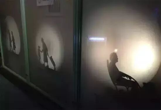 在光的照射下,观众在前面看到的,是温馨美好的场景。