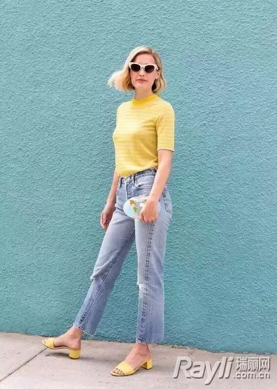 黄色最为跳跃,它寓意着阳光般的活力和悠扬,尤其是在色彩大行其道的夏日街头,活力感十足的黄色最为惹人喜爱。