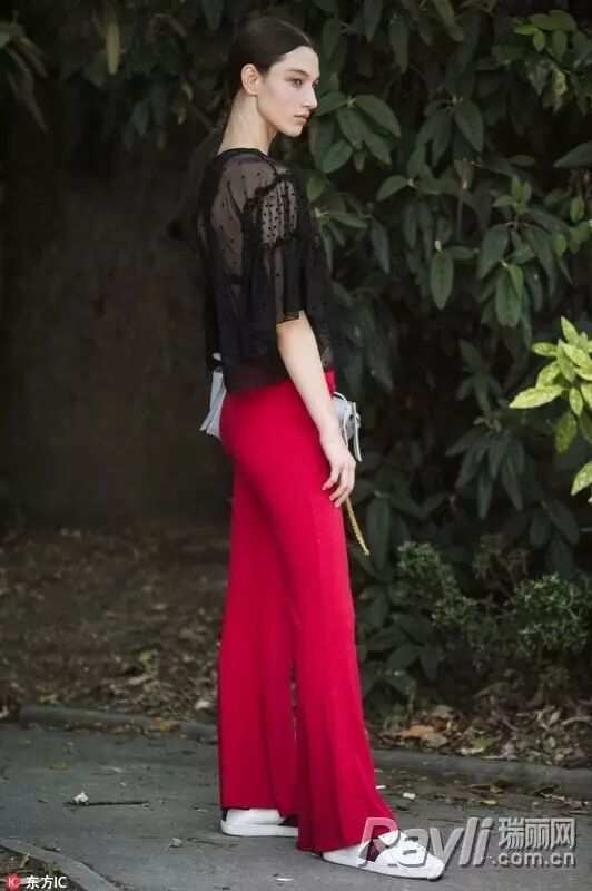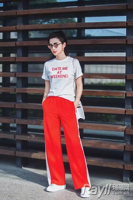 红色裤子相对来说比较挑人,需要你拥有一双又细又长的铅笔腿!