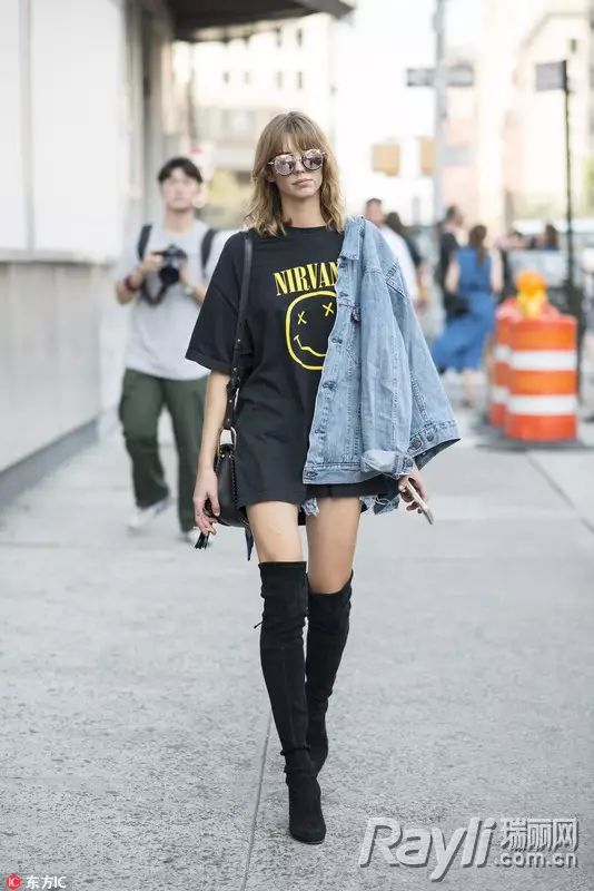 很多小姐姐都喜欢下衣失踪穿法,配上长靴更显腿细哦~