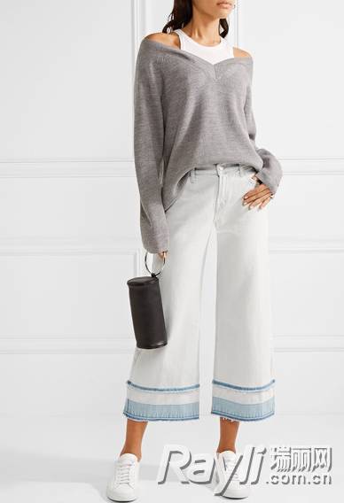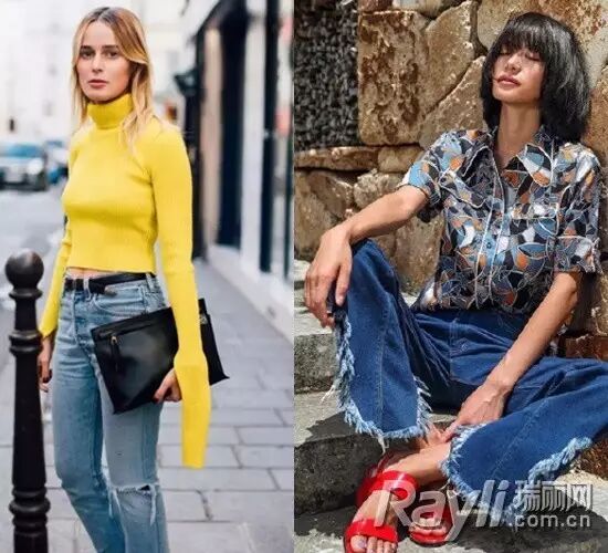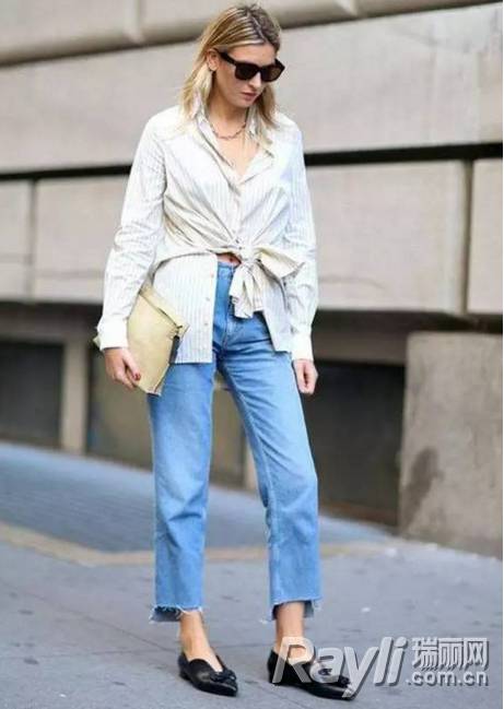 选择牛仔裤时开衩款式和毛边款式更加有趣,加上尖头鞋更显腿长哦~