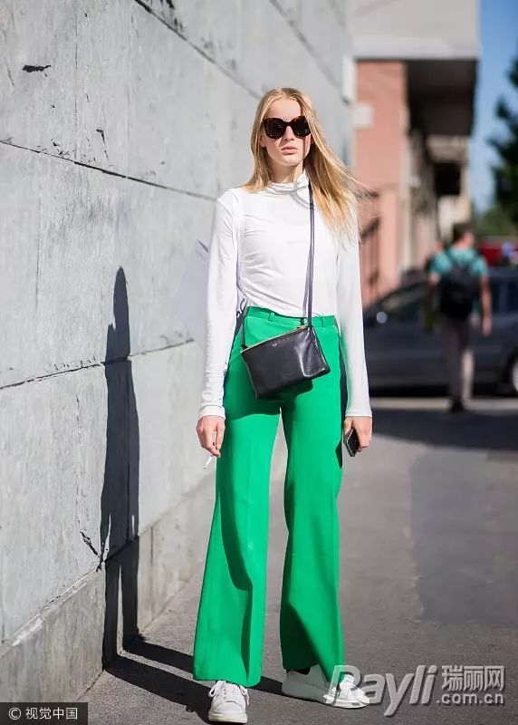 这样亮绿色的裤子自然是美得让人无法抗拒,不过门槛自然也高了些,阔腿裤是不错的选择!