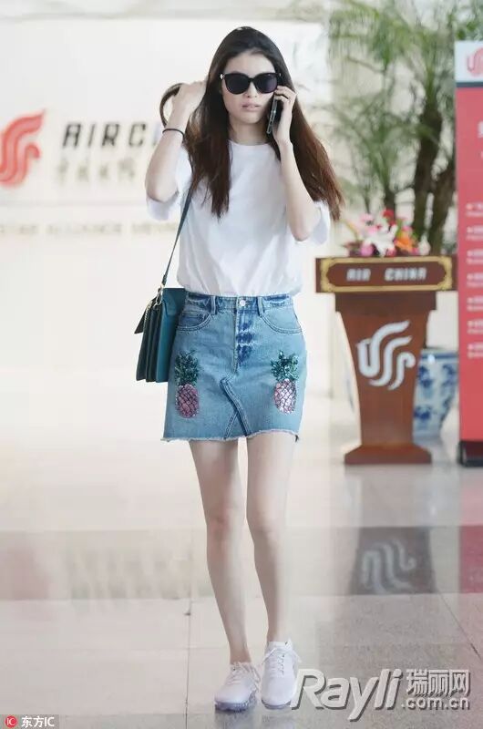 想要多点女人味的话,那可以试试陈乔恩身上这件背带裙!卡通刺绣印花满满的少女心!