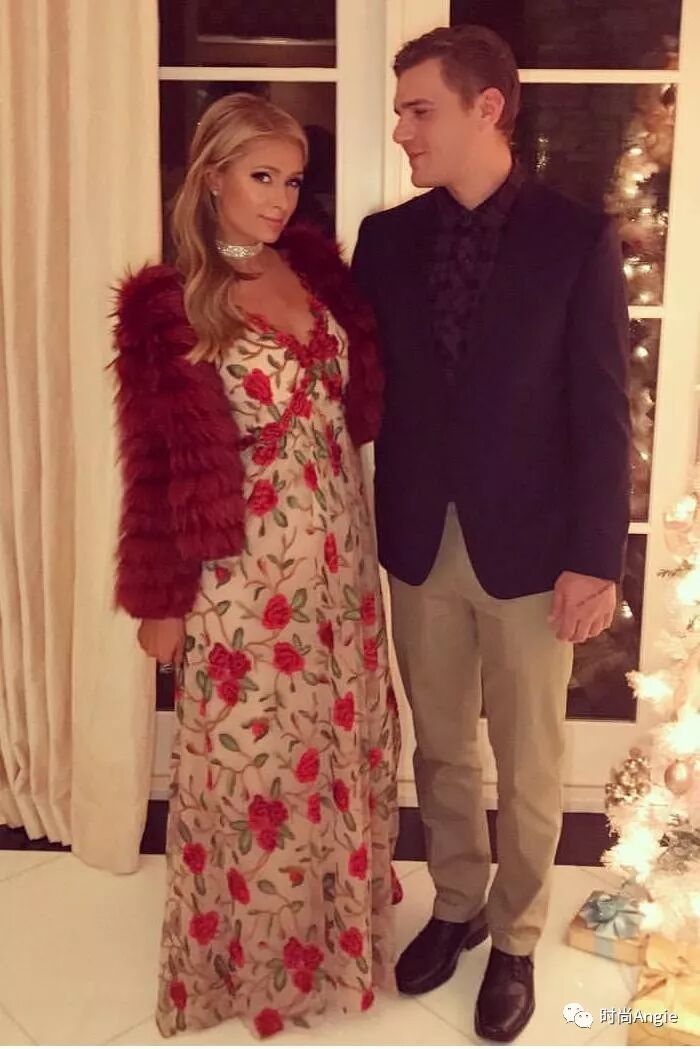 再来一身新年夜的, 这次Paris穿的竟然是“广告” 裙