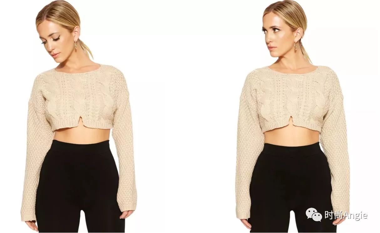 仍然延续了之前的一身白色,但这次的搭配里加入了一件棒针短款毛衣,更加的时尚俏皮。