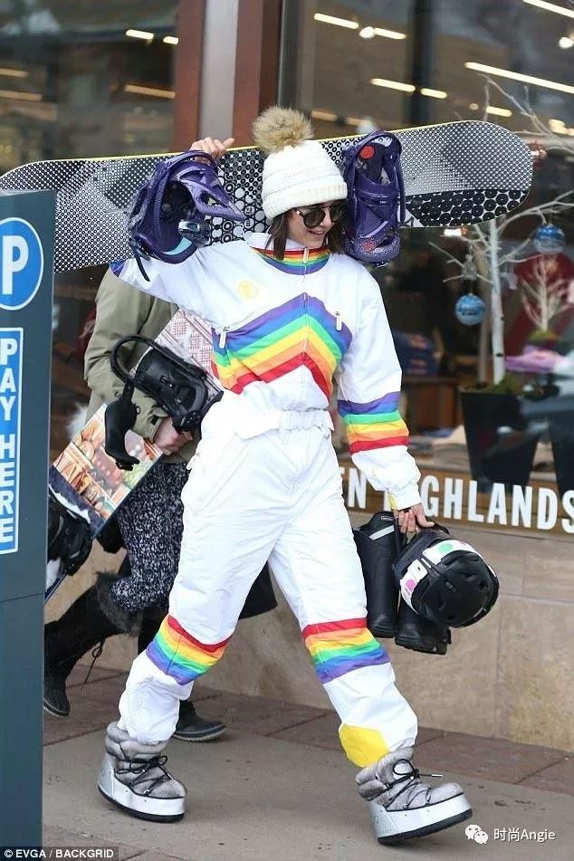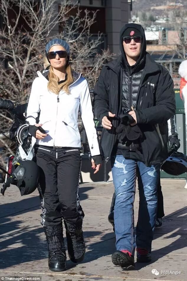 Paris这一身滑雪装备都是高价货。外套和滑雪裤都出自Jet Set.