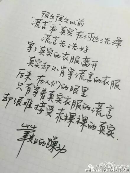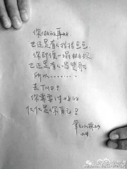 这个笔迹就是来自井柏然,我们都知道井宝写字好看,也经常发写手写微博: