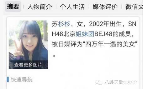 这个美女就是来自SNH48(上海)姐妹团BEJ48(北京,据说还有个广州的叫GNZ48,48觉得很无辜……)的成员苏姗姗,哦不是,苏杉杉~