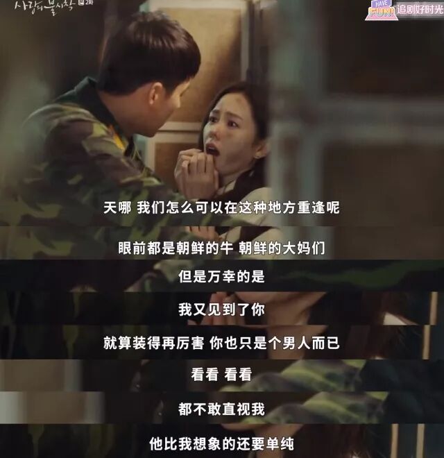 孙艺珍、玄彬,恋爱不是这么谈的! 三联生活周刊 日韩女星 2019-12-26 12:27:56 662 创作不易,用心坚持,欢迎请BaGua喝几杯爱心咖啡!打赏并支持本文 打赏并删除本文 作为年末最受期待的韩剧,《爱的迫降》不断刷新自身收视率,抢滩热搜。这部剧之所以未播先火,是因为它的全员韩流顶配阵容:南韩四大公共财产之一的不老男神——玄彬,国民初恋“孙仙”——孙艺珍,再加上当初红遍亚洲的《来自星星的你》编剧朴智恩,十足的爆款卖相。那么,在下半年韩剧普遍收视低迷的情况下,《爱的迫降》还能续写《星你》的收视神话吗?怀着极高的心理预期看完目前播出的4集,我只想说,豆瓣这个浓眉大眼的也会被美貌所迷惑,给出8.5分?!第一集开篇,拥有自己时尚品牌的财阀富家女尹世莉(孙艺珍饰),利用与男明星(郑敬淏客串,豪华阵容+1)的约会偷拍照,将自己约会时穿的自家品牌服装、配饰有意透出,几天之内,极具经营头脑的“带货女王”尹世莉就帮公司完成了半年的销售额,李佳琦看了都感到佩服。这让我不由得想起最近某女星与某小生被扒出的身穿某品牌情侣装,看来全球营销人都深谙此道啊。接着,这位集美貌与商业头脑于一身的女总裁,展现出了与家人极为不睦的一面。像所有韩剧的套路一样,财阀家族围绕公司继承权起了争执。最终,刚刚出狱的财阀本人出人意料地决定将公司交给不受待见的小女儿尹世莉。就在尹世莉喜气洋洋准备走上人生巅峰的时候,她做出了一个常人难以理解的选择:公司新品运动衣发布,一个顶级财阀继承人,竟执意要亲自穿着这款服装飞滑翔伞。接着,意料之中的意外发生了:尹世莉乘着龙卷风,带着编剧交给她的任务,毫发无损、楚楚动人地自挂东南枝哦不是朝鲜境内的树上。从最初曝光的人物介绍中,我明白这段跨越三八线的爱情需要一个契机,可竟然是以这种方式?对此,编剧朴智恩对此是这么解释的:2008年曾经有一位韩国女明星因玩划艇时迷失了方向,误闯朝鲜,跟朝鲜人有了对话,就是这件事件让她有了灵感。(Emmm……好吧)当女主从昏迷中醒来,她挂在了目测离地四五米高的树上,朝鲜军官、男主角李政赫(玄彬 饰)在巡逻中发现了她。当一身戎装的玄彬持枪出现,从弹幕疯狂刷屏的爱心中,我们立刻明白了这部剧的收视热点在哪里。玄彬不是第一次扮演朝鲜军官了,在电影《共助》中,玄彬饰演的朝鲜军官与韩国警察合作,追捕犯罪者。他台词不多,但贡献了精彩的打斗、追逐场面。2年后,他的造型更加英气,37岁的玄彬毫不油腻,一招一式依旧利落帅气,神情真挚,令人心动。他帅气的外表也理所当然地迷倒了尹世莉。看到李政赫,尹世莉仿佛瞄准般精确地从高空中砸到了他的怀里。在发现自己来到了北韩后,她情绪崩溃,只想逃跑。于是,她毫无顾忌地在边界地雷区、电网旁、哨兵瞭望塔下狂奔,丝毫看不出可能被射杀的恐惧,简直不拿北韩边防当回事,抗日神剧看了都惭愧。我用二倍速看完了这乏味的追逐战,尹世莉还是自作主张疯狂逃跑,万万没想到,跑到天黑,居然跑回了男主的家中。李政赫是如来佛吗?怎么挣扎都逃不出他的手掌心?而这个小村庄,布景感很强,标签化地展现出了北韩的生活日常:定点断电、街边刷着标语、统一分发食物、人们互称同志……但是因为太像棚中布景,让人有些出戏。村里人流熙熙攘攘,李政赫一个壁咚,把尹世莉保护在自己怀中。仍想逃跑的尹世莉开始挤眉弄眼地讪笑,准备用美色让李政赫放松戒备。我看得一阵头疼,孙仙你清醒一点!《请吃饭的漂亮姐姐》里,你可是不动声色,举手投足间就尽展女性魅力的,你不需要这样!李政赫果然对尹世莉很好,不仅第二天化身北韩李子柒,用简朴的食材为尹世莉做早餐,还去市场买咖啡豆为她做手冲咖啡。除此之外,李政赫作为“有求必应”先生,不仅给尹世莉买洗发水、护发素、沐浴液、精油,还主动为她买了Bra?为了一个刚认识,身份成谜的异国女孩,一定要做到这种地步吗??(WHY???)前4集,一共有两个高能时刻。在李政赫出差时,他家被突击检查了,为了营救尹世莉,一场网络小说“高干文”剧情上演了。他借了一辆象征着极高级别官员的军牌车疾驰,每个路口,交警妹子视力超神,迎着远光灯看到了车牌,立刻交通管制,打开绿灯,让李政赫的车得以通行。在尹世莉被枪指着脑袋的时候,男主带着光环及时赶到。“你在对我的未婚妻干什么啊!麻烦你把对着我未婚妻的枪拿走。”看看,霸道总裁回来了,试问哪个女孩听了这句话不心动?男主角,一个设定为北韩一人之下、万人之上的总政治局长独子,不顾组织纪律和森严法规,堵上自己的性命为来路不明的尹世莉背书,剧情之突兀,让人难以接受。不过更难接受的,是后来尹世莉脑袋一热准备再坐滑翔伞飞回国,李政赫紧急救援时,两人紧紧相拥跳下悬崖,没人操作滑翔伞,在抠图演技中逃出生天。另一个高能时刻是,李政赫准备送尹世莉坐船偷渡,没想到再次被查。李政赫急中生智,在被发现的瞬间,捧起尹世莉的脸亲了起来。大概编剧也觉得剧情沉闷乏味,创新式地打破了韩剧亲吻“第八集定律”,第三集就安排上了。密闭空间,焦灼的男女,深情一吻,令人脸红心跳。可是!冷静一下,这突然的一吻,居然是因为李政赫听爱看韩剧的战友说,南韩人遇到危险就会这么做。这……这符合男主活了三十多岁的年龄吗?对于如此亲密的行为,居然会