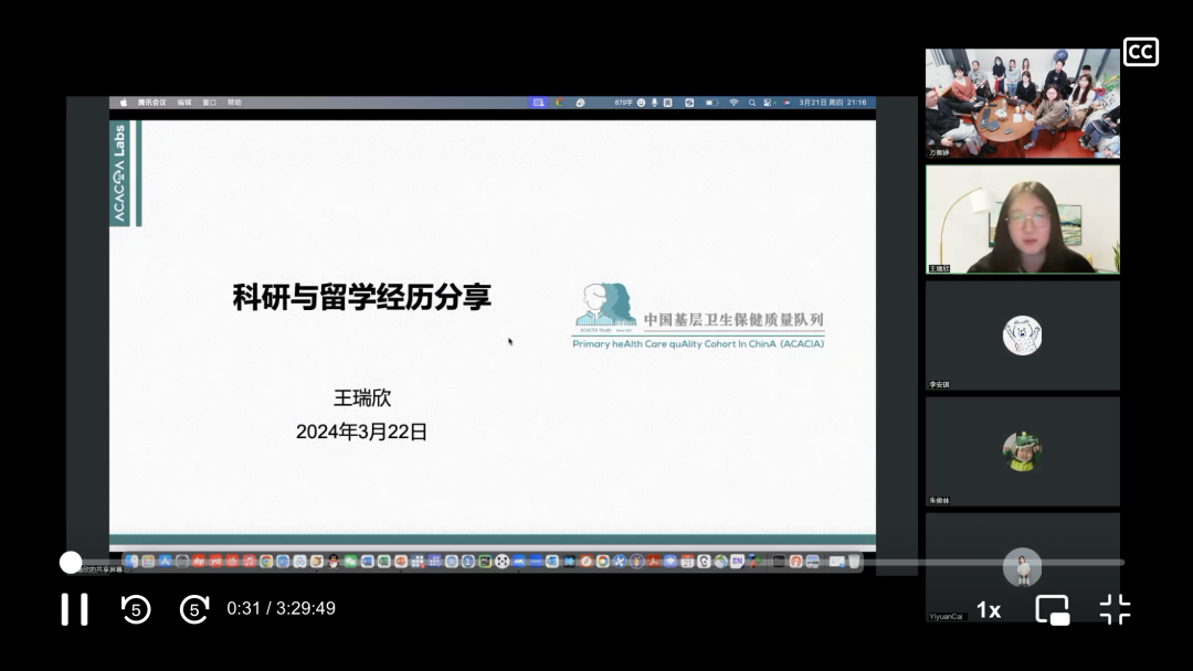 为了提升团队学习氛围,促进经验交流,Acacia Lab for Implementation Science团队特邀请王瑞欣同学于3月22日线上分享其留学经历与科研心得。瑞欣同学围绕在国内求学和在耶鲁大学做访问学生的经历,分享了在留学动机、海外教育环境体验、中美教育模式差异、科研项目设计等方面的见解。下面是这次分享会的主要内容概要。