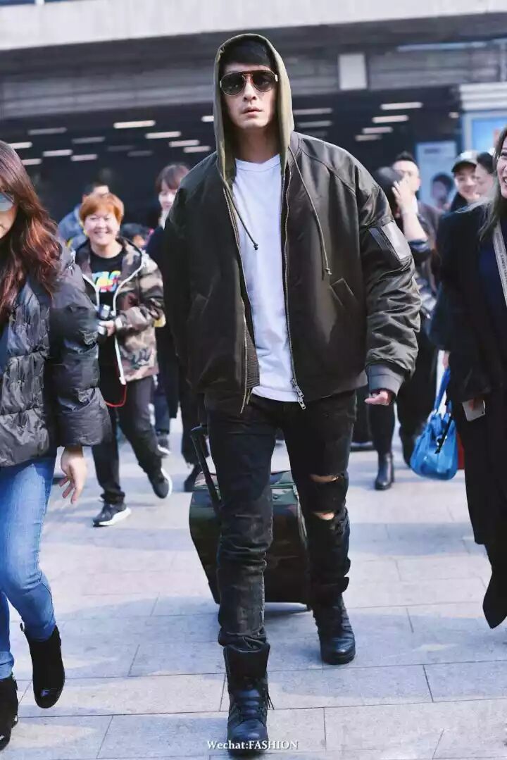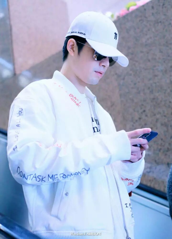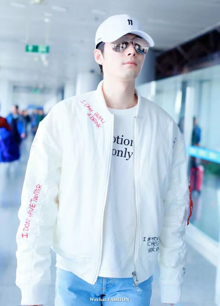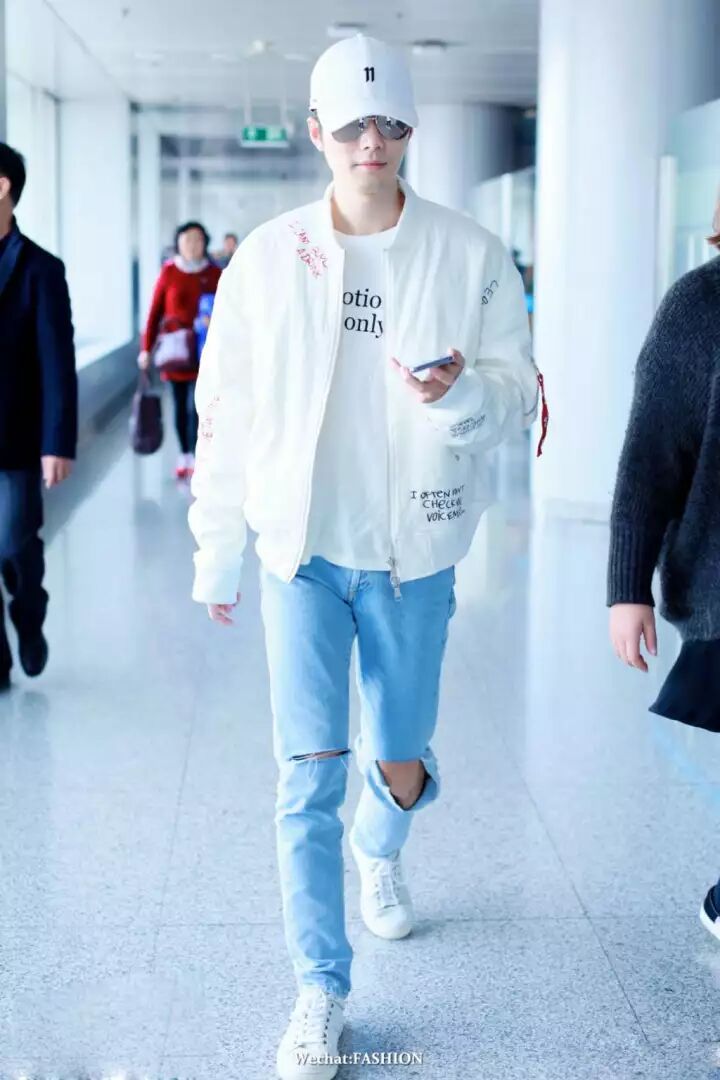 陈学冬现身机场,身穿Haculla白色飞行员夹克内搭白T,简单清新又帅气,只是破洞裤看着有点冷。
