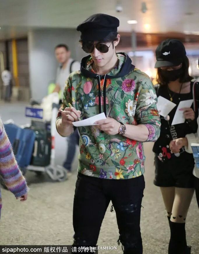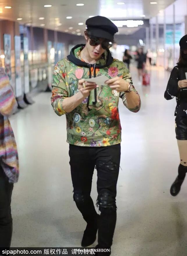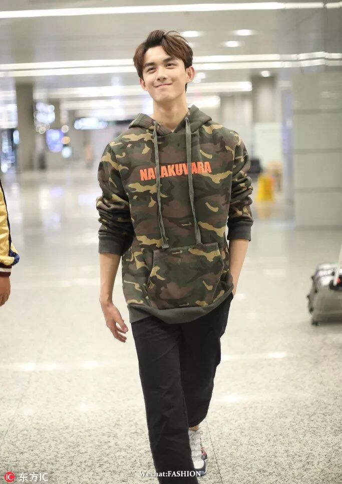 吴磊身穿彩卫衣+黑色直筒裤+运动鞋,帅气现身上海机场。