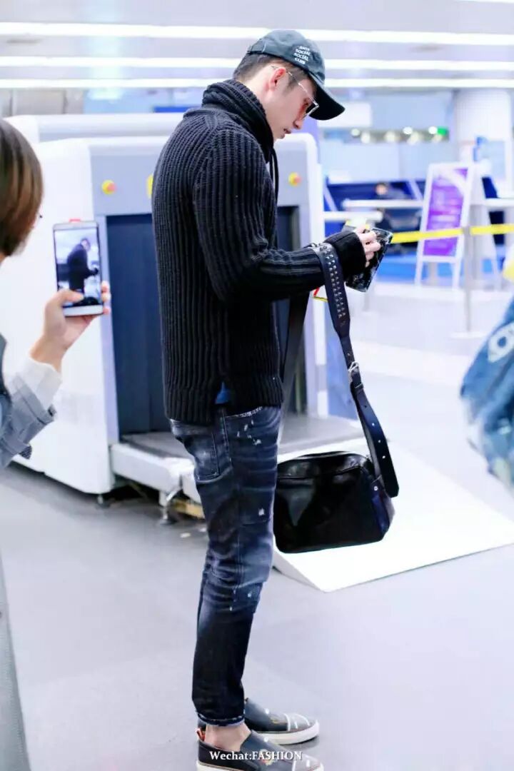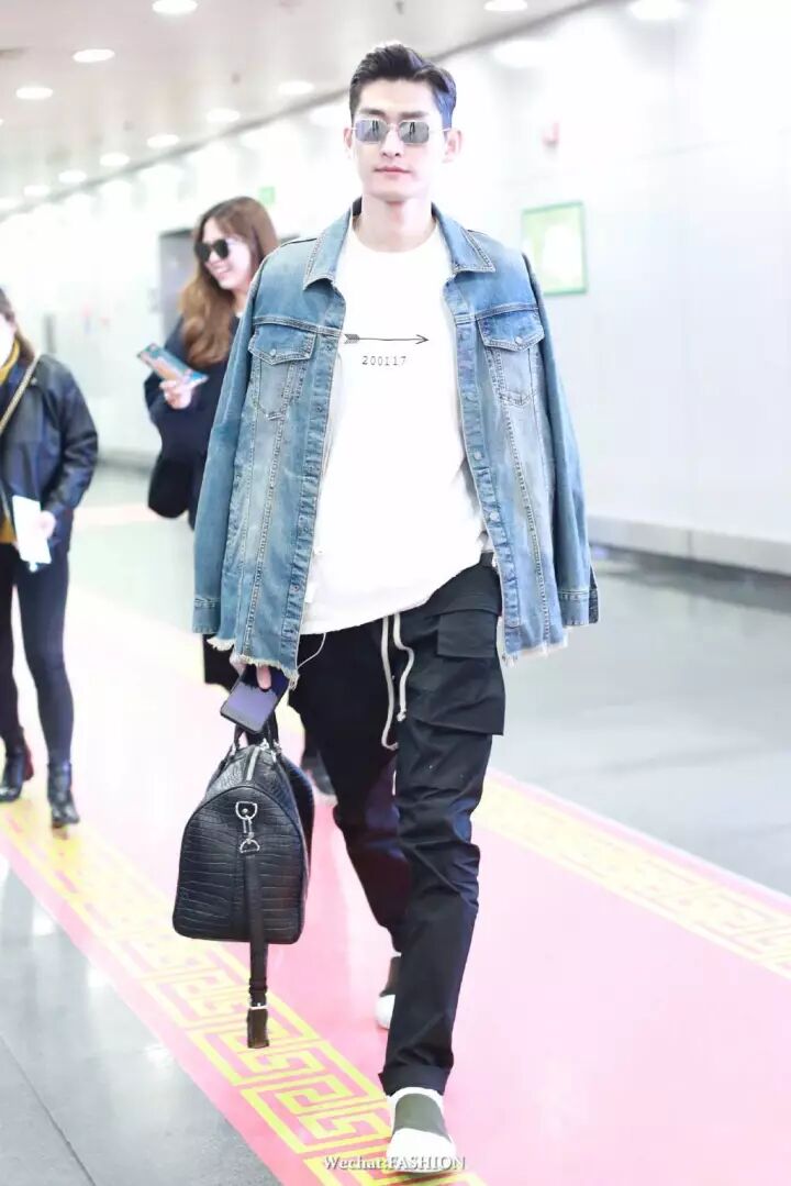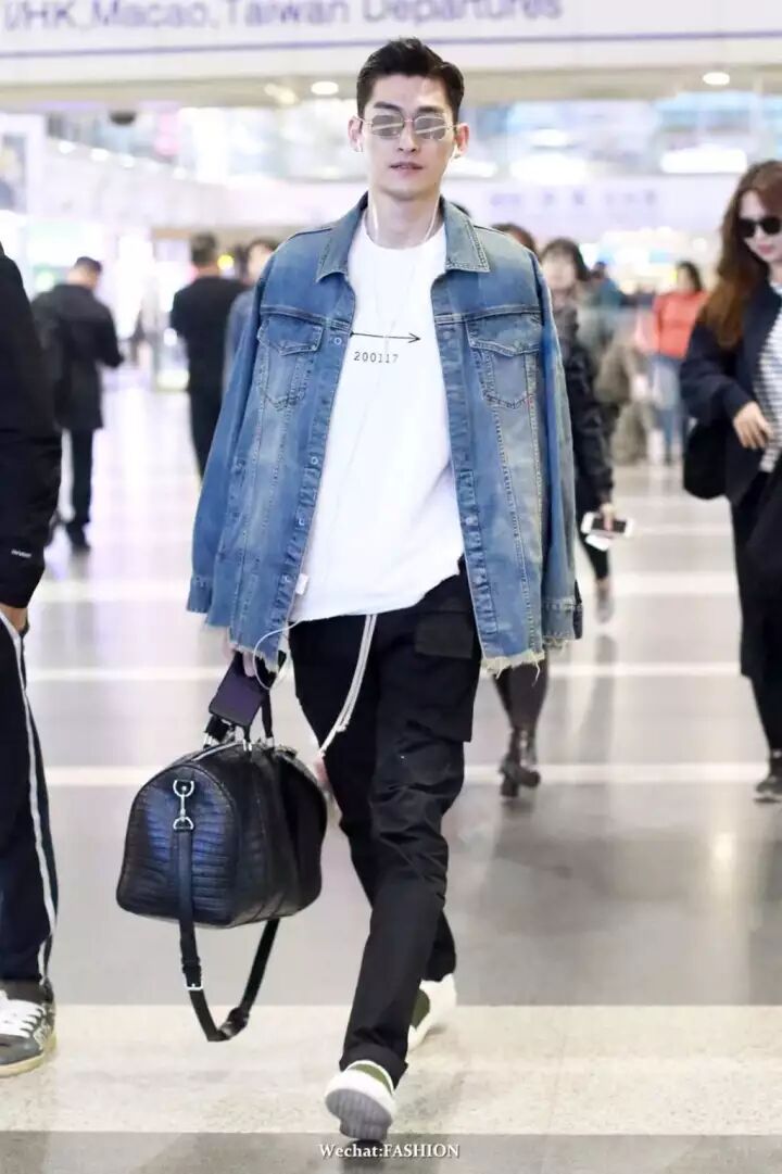 张翰现身机场,用牛仔外套搭配休闲裤轻松又惬意。