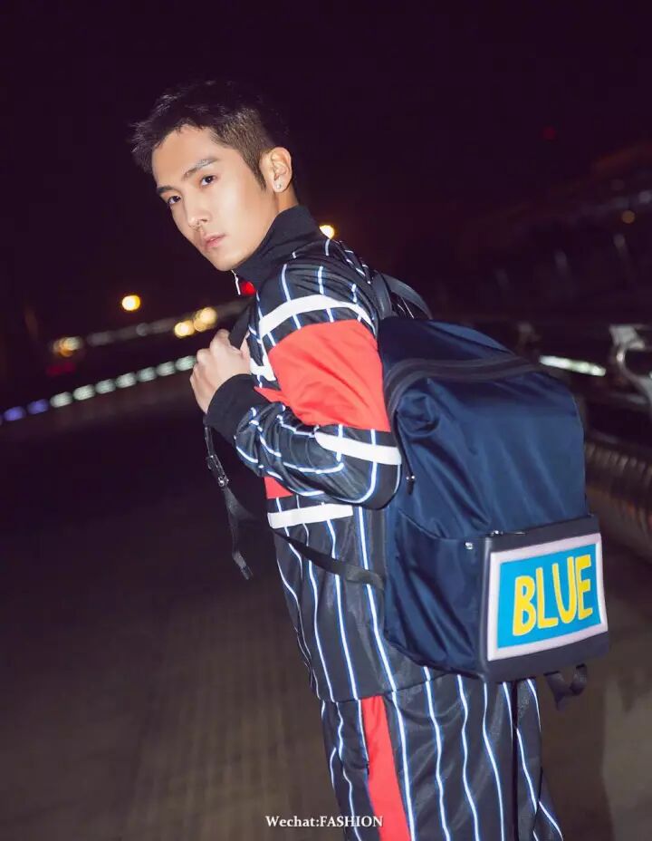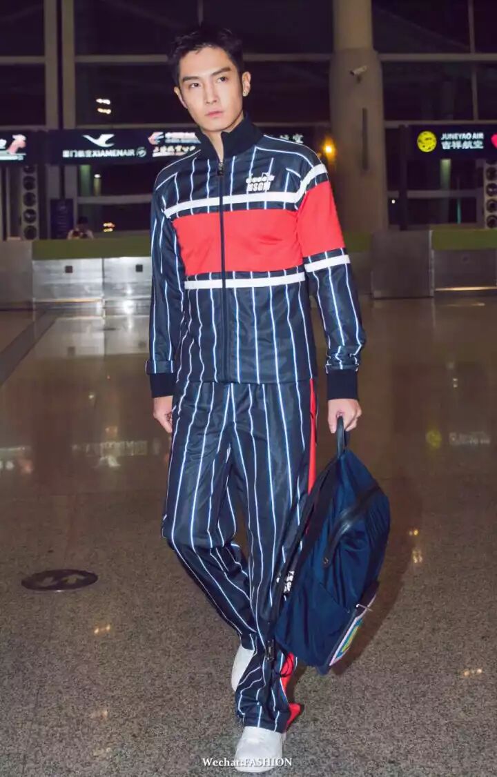 盛一伦机场街拍,MSGM X Diadora复古条纹运动套装,搭配Fendi午夜蓝双肩背包,运动系少年感扑面而来~