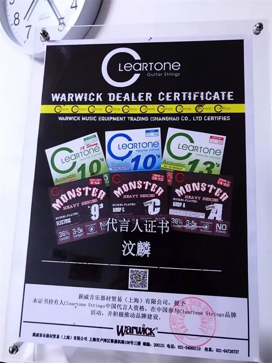 本次合作由Cleartone琴弦中国总代理握威中国与汶麟经纪单位吉他中国达成合作协议,双方将在Cleartone琴弦相关活动一起努力,为吉他爱好者推荐和介绍Cleartone琴弦,汶麟也将在今后的巡演中使用Cleartone琴弦和推荐。