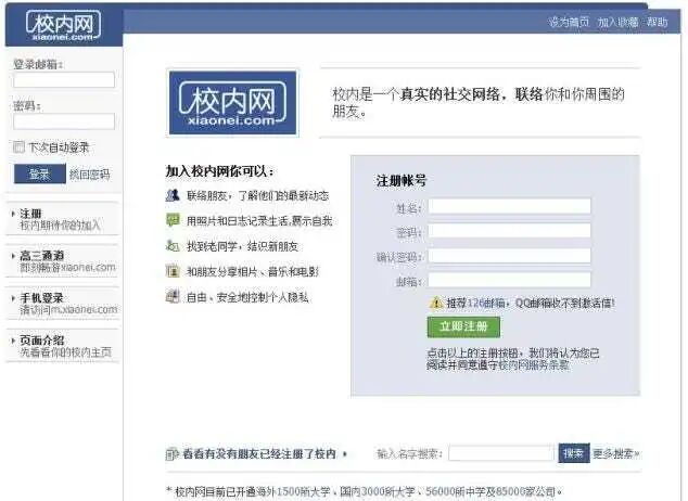 这一年,在美国拿到硕士学位的王兴抓住这个机遇,他和几个朋友共同创建了一个社交网站,与脸书相似,也是蓝色打底,也主要面向在校大学生,它的名字叫校内网。